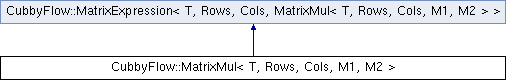 Inheritance diagram for CubbyFlow::MatrixMul< T, Rows, Cols, M1, M2 >:
