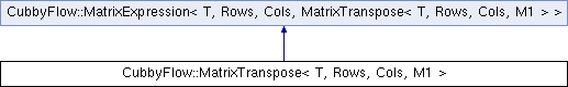 Inheritance diagram for CubbyFlow::MatrixTranspose< T, Rows, Cols, M1 >:
