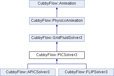 This class implements 3-D Particle-in-Cell (PIC) method by inheriting GridFluidSolver3. Since it is a grid-particle hybrid method, the solver also has a particle system to track fluid particles.